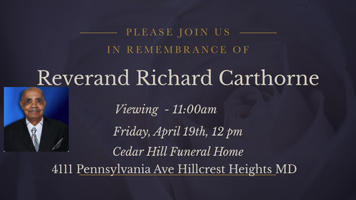 We thank God for the time that we had with Reverend Carthorne. To learn more about his life and view the tribute video created, please click below.